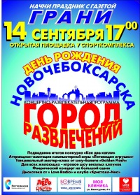 14 сентября на открытой площадке перед Спорткомплексом Новочебоксарска праздничный проект 'Город Развлечений'14 сентября ко Дню Города и Art-House PLAY на открытой площадке у Спорткомплекса представляют праздничный проект 'Город Развлечений' - несколько арт-площадок, объединённых весёлым поводом - Днём Рождения г.Новочебоксарск.